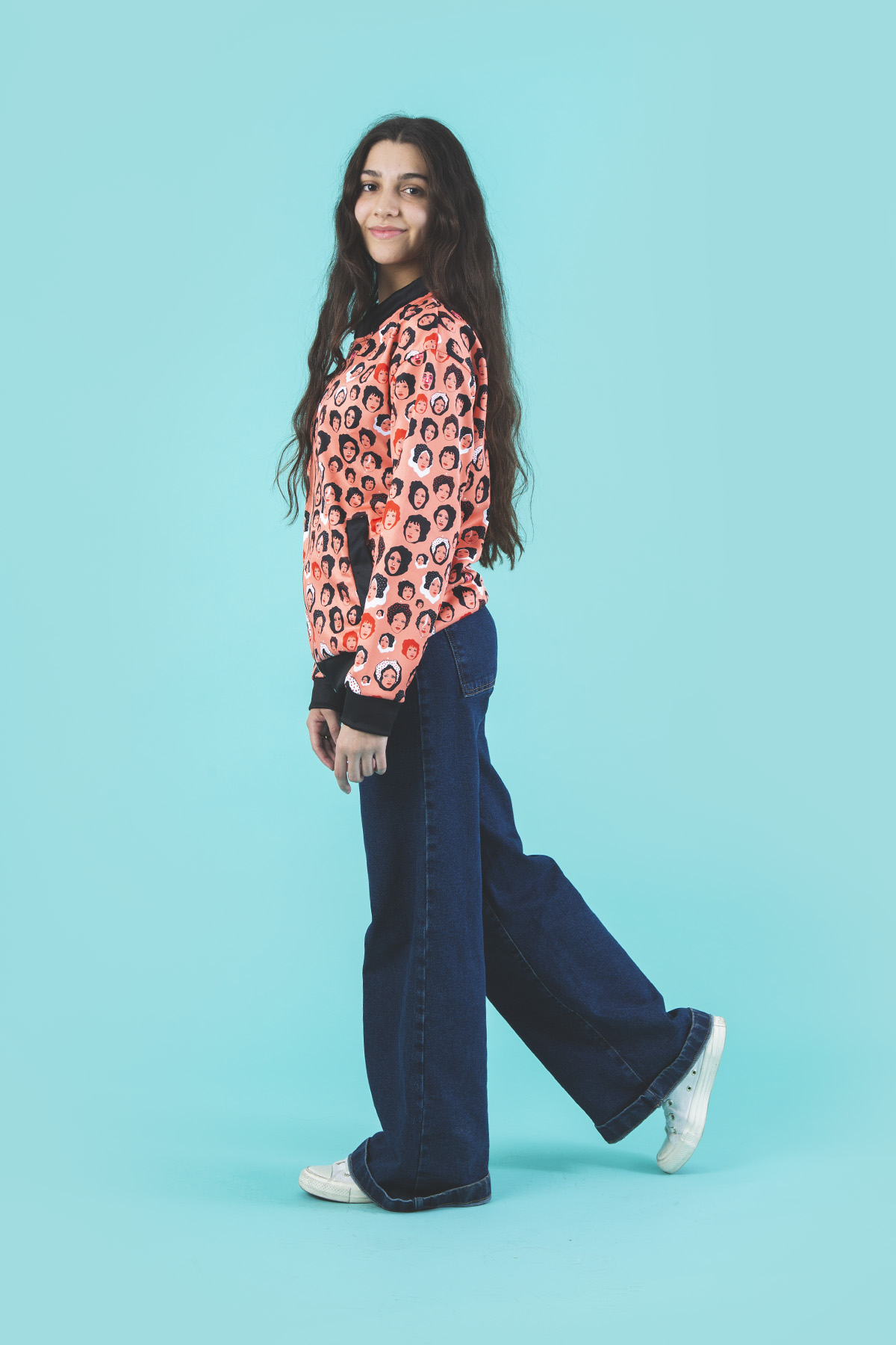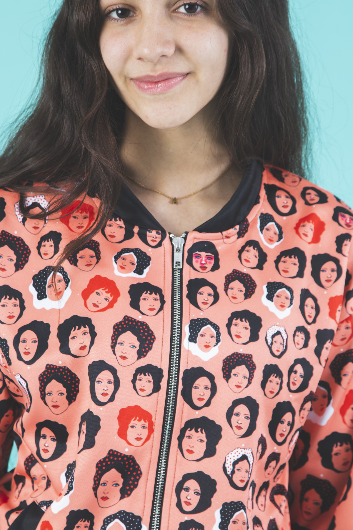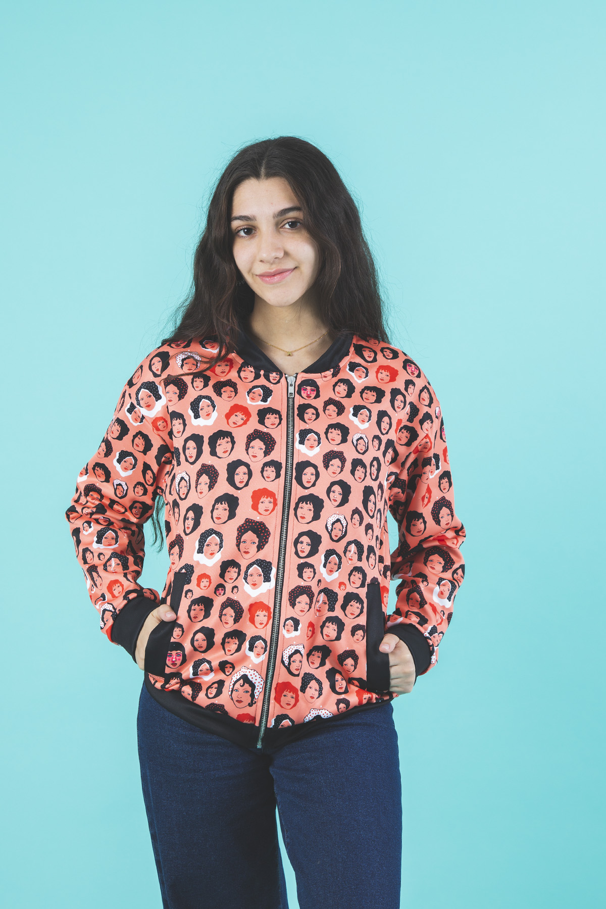 Nuestra bomber femme rediseñada en un formato de caritas más pequeñas…LOVE