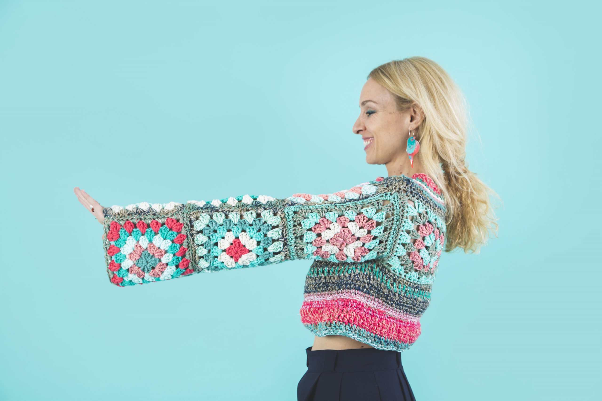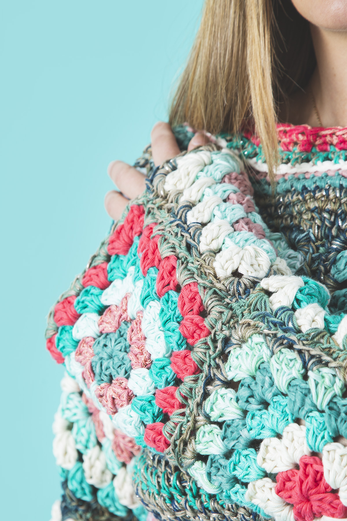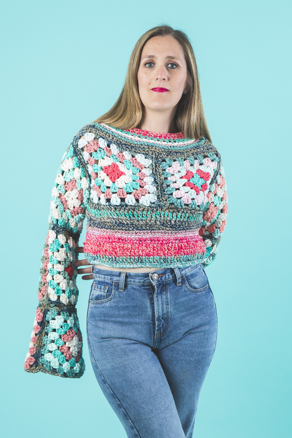 Jersey de crochet multicolor, mi prenda preferida de Calma Chicha, se trata de una pieza única realizada a mano…no podría repetirla igual!!!